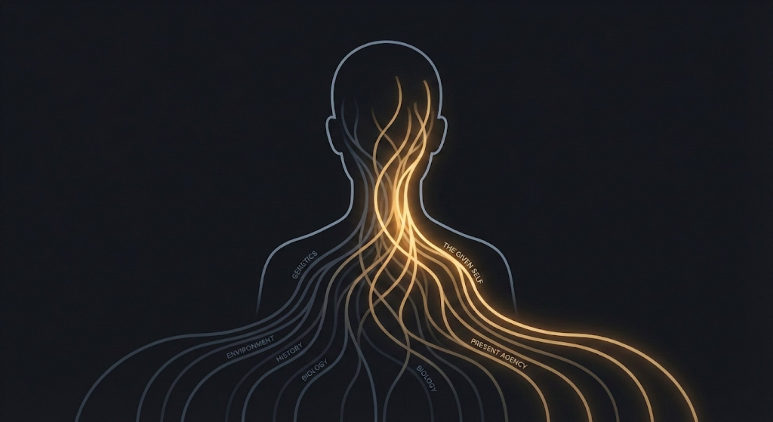 You are not an island of uncaused choice. Every thought, emotion, and action you experience is the result of prior causes—genetics, history, environment, and biology. The version of you that exists right now is your Given Self. You did not choose it, but you are responsible for navigating it.